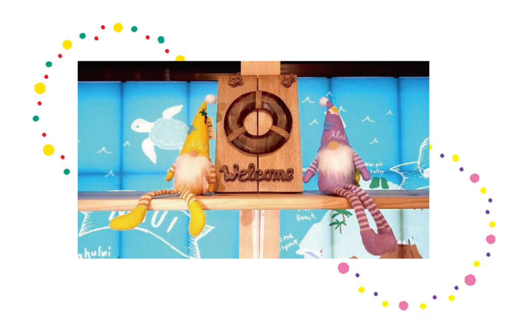 店内でまず皆様をお迎えするのは、色鮮やかで心躍るハワイアン雑貨の数々です。